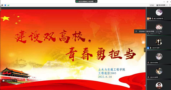 为增强青年学生爱校荣校之情,强化青年学生投身学校建设和发展的使命感与责任感,6月以来,我校613个团支部线上开展“建设双高校,青春勇担当”主题团日,全体团员青年参与活动。