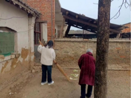 为进一步弘扬中华民族尊老爱幼的传统美德,娄博南同学在学院的号召下主动帮助村里空巢老人清理院落、整理屋内卫生等。在温情中深切交流,在寒冬中清扫冰雪,让孤寡老人感受到温暖,感受到我们的关爱,用行动践行我们青年学生的担当与使命。娄博南同学说:“通过本次的关爱老人实践活动,让老人们切实感受到温暖,用自己的行动帮助了弱势群体,未来我会坚持参加实践活动,帮助更多需要帮助的人。”
