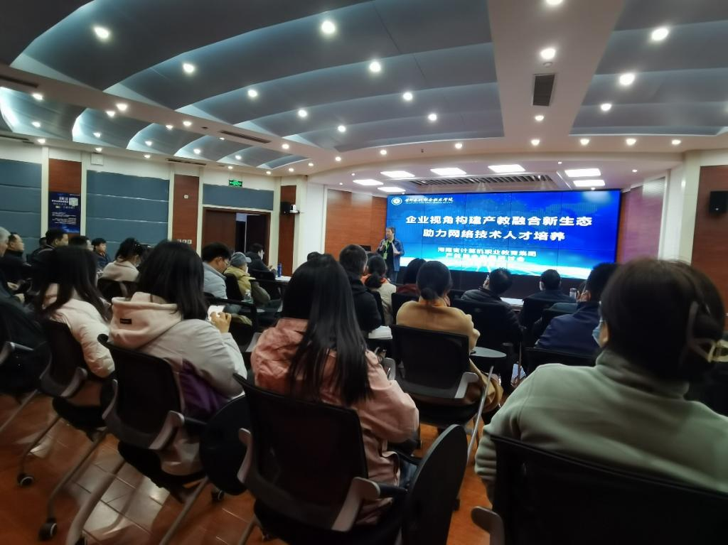 3月23日,我校作为河南省计算机职业教育集团理事长单位,邀请中锐网络公司等企业代表以及来自全省50多所高职院校的专业带头人、骨干教师召开了网络技术专业产教融合专题研讨会。