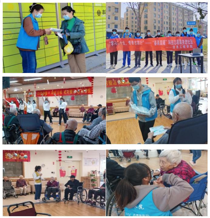 为大力弘扬科技志愿服务精神,广泛普及科技志愿服务理念,信息工程学院志愿服务队于3月27日走进复兴社区里仁居小区开展科技服务进社区志愿服务活动,结合自身专业知识,运用简洁的语言、现场向社区居民宣传电脑知识,并向广大居民普及“科技安全”“防止电信诈骗”等相关知识,积极倡导群众树立科学文明健康的生活理念,同时为居民们维修电脑。志愿者们认真负责,一丝不苟的精神受到居民们的赞许;随后又走进敬老院开展情暖老人心的主题活动,志愿者们带着灿烂的笑容和真挚的问候来到敬老院,为老人送去牛奶、水果等慰问品,在活动中,志愿者帮老人打扫卫生、整理房间,并与老人亲切交谈,仔细询问生活状况,跟他们拉家常,叮嘱老人们日常要注意饮食清淡、作息规律、坚持运动,也静静聆听他们讲述自己丰富的人生经历和社会经验,在他们许下了对自己以及对儿女的愿望后,志愿者们教他们将心愿用纸写下来并折成了小星星。这种方式很好地寄托了老人们的心愿,让他们对未来有了更美好的期待。随后,志愿者们为老人献上了精心准备的才艺表演,舞蹈与演唱的共演把现场气氛推到了最高潮,丰富多彩的节目赢得了老人们的齐声喝彩和阵阵掌声,欢声笑语在敬老院里久久回荡,温暖着每一位老人的心。