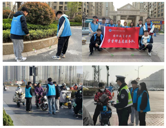 为扎实开展学雷锋志愿服务活动,弘扬“奉献、友爱、互助、进步”的志愿服务精神,营造文明有序、整洁卫生的居住环境,2023年3月5日与28日国际教育学院学雷锋志愿服务队深入开封市鼎立社区,开展文明交通和清洁卫生志愿服务活动。志愿者们身着小水滴马甲一大早来到了东京大道与黄河大街交叉口处,在路口站岗执勤,协助交警指挥交通,向过往行人宣传“一盔一带”安全守护行动,进行安全劝导,提高行人安全出行意识;在鼎立社区开展志愿服务,志愿者们拿着夹子、垃圾袋等工具,在社区公共地带的卫生死角和小区绿化带等区域进行垃圾清理。