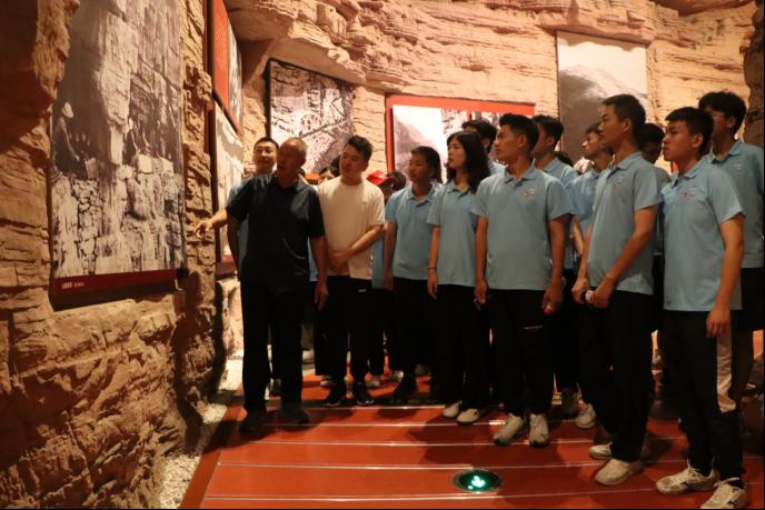 红旗渠实践分队的队员们沿着习近平总书记的足迹先后来到红旗渠纪念馆、分水闸、青年洞进行实地学习。在参观红旗渠纪念馆过程中,实践分队邀请到红旗渠特等劳模张买江为同学们生动讲述修渠故事。队员们与张买江进行深入交流,并跟随他重温了林县人民苦战十个春秋,仅靠一锤、一钎、一双手,在太行山的悬崖绝壁上修成人工天河红旗渠的艰苦历程,切实感受到了林县人不认命、不服输、敢于战天斗地的英雄气概和“誓把河山重安排”的豪情壮志。队员们在红旗渠分水闸前重温入团誓词,铿锵有力的声音彰显了自豪感与使命感。在走“红飘带”、登“水长城”的过程中,队员们沿渠而走,从大山之中穿过,来到经300名青年1年5个月的奋战而建成的青年洞。队员们了解到青年洞修建过程中,创造了连环炮、瓦缸窑炮、三角炮、抬炮、立炮等多项新的爆破技术,将地势险要、石质坚硬的岩壁凿通,无不对当时青年们顽强拼搏、勇于创新的青春风貌所感染。