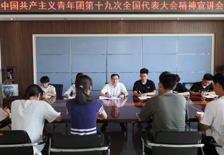中国共产主义青年团第十九次全国代表大会于6月22日上午在北京人民大会堂胜利闭幕。6月23日,我校在学生活动中心308室开展团十九大精神宣讲会,校团委全体人员及30余名学生干部参加会议。校团委书记范龙对团十九大精神进行宣讲。