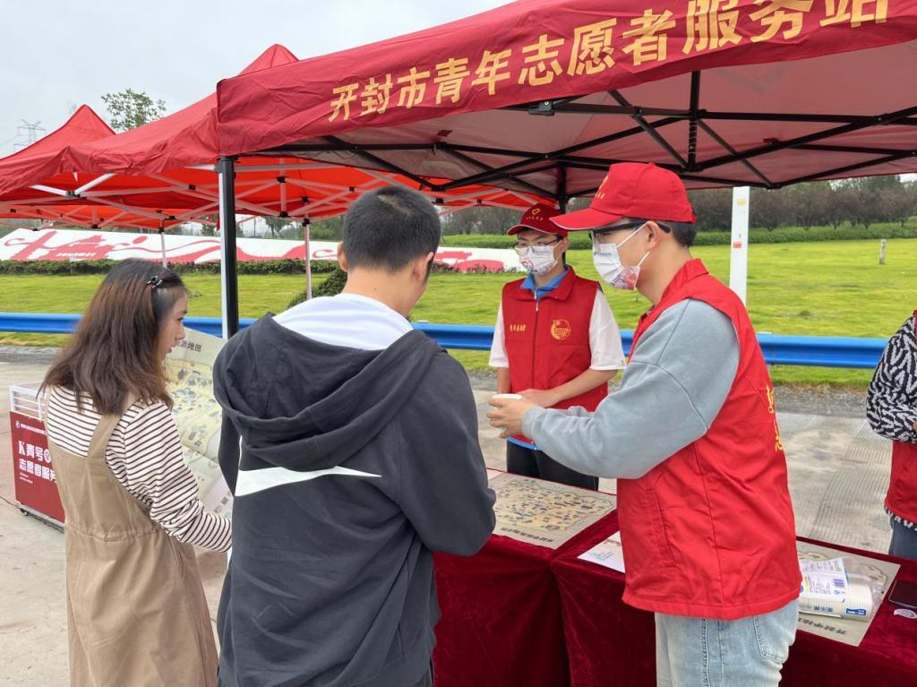 志愿服务活动期间,我校志愿者在连霍高速收费站附近搭设帐篷设置文明旅游志愿服务站,志愿者们耐心解答游客提供旅游咨询、路线引导、安全提示并免费发放开封地图等,为八方游客提供优质服务,营造文明、安全、有序的城市氛围。汪世杰、李紫萱、郭志毅等志愿者们表示:希望我们热情、周到的服务,展示出开封古城人民的淳朴与热情,为古城开封增添青春色彩。