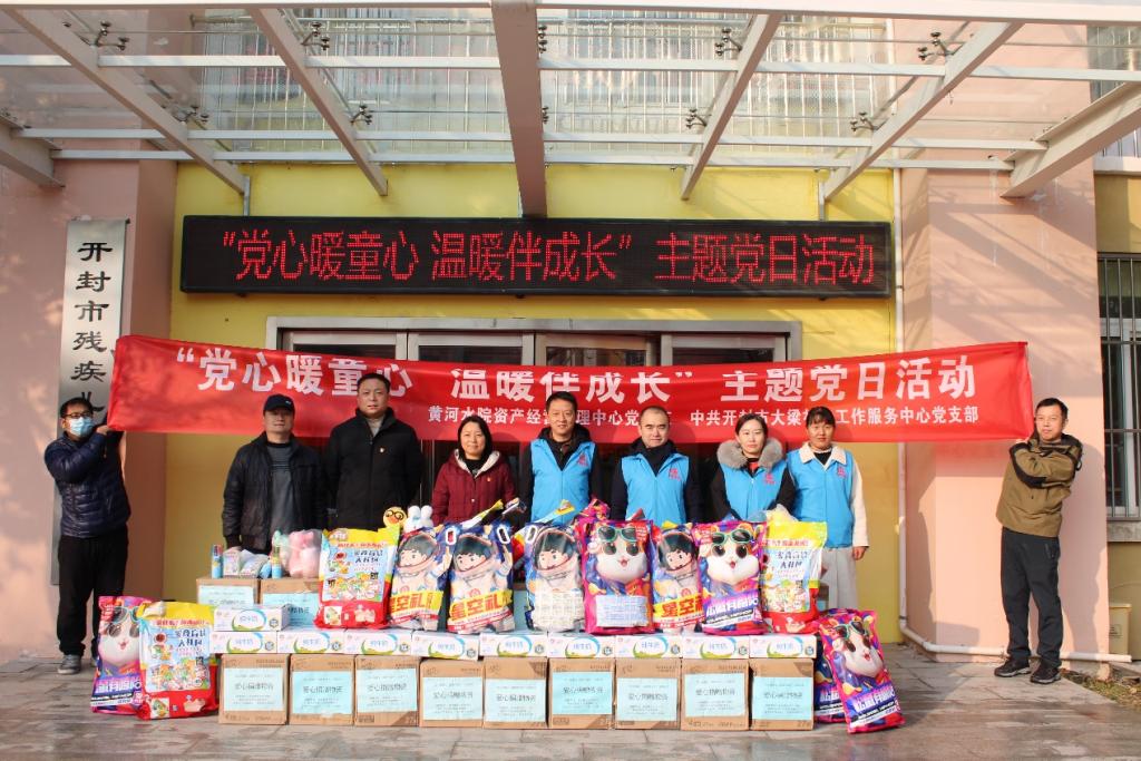 活动最后资产经营管理中心党总支联合开封市大梁社会工作服务中心党支部一起向残疾儿童捐赠了纸巾、牛奶、零食大礼包、玩偶、文具等孩子们所需物品,表达对孩子们的亲切关怀。