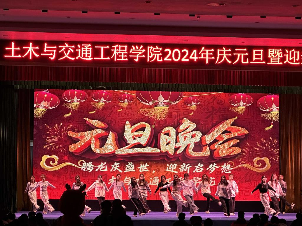 近日,土木与交通工程学院在大学生活动中心举办了一场精彩纷呈的元旦暨迎新晚会。学院领导与教研室主任、各年级辅导员以及学生们齐聚一堂,共同庆祝新年的到来。