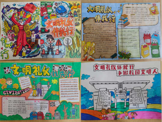 “文明礼仪事迹我来画”绘图活动。我校青年学子用画笔和色彩诠释着对文明礼仪的深刻理解和积极追求,以独特新颖的版面设计、合理美观的色彩搭配,展现了一个个生动形象的场景,引导同学们将文明意识内化为日常学习和生活的行为自觉。