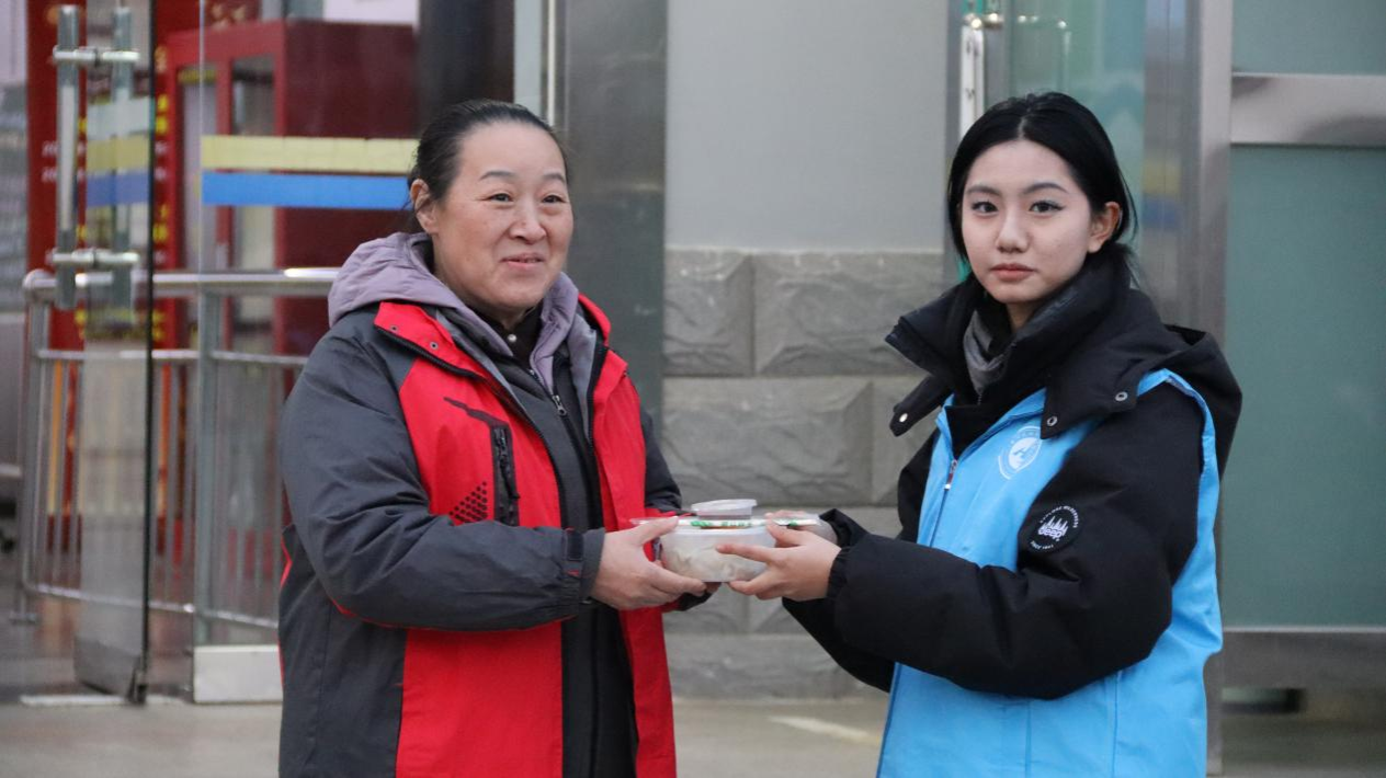 “小水滴”志愿者们为宿管工作人员送水饺