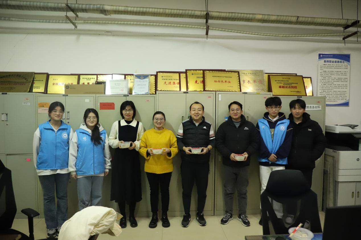 “小水滴”志愿者为辅导员老师送水饺