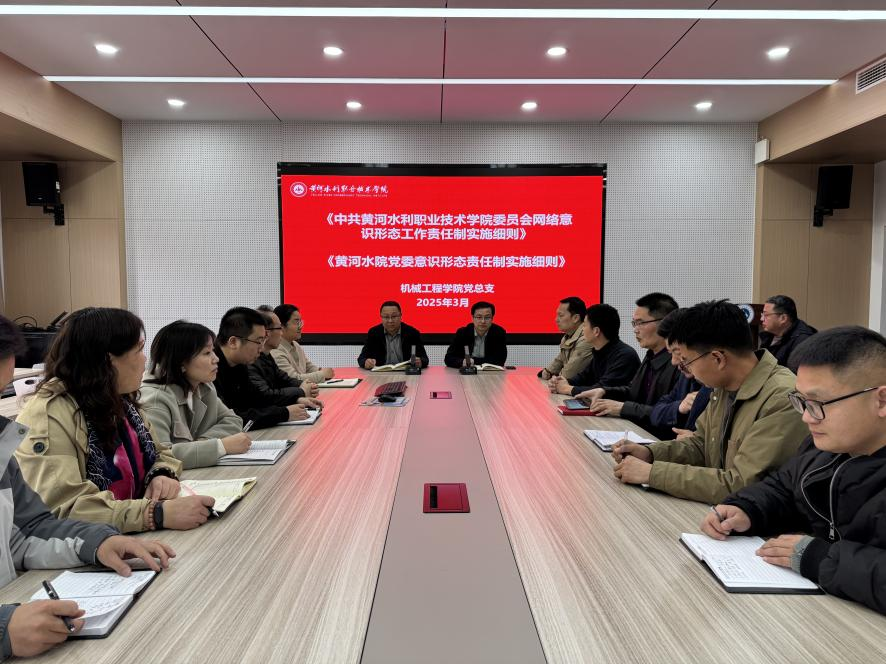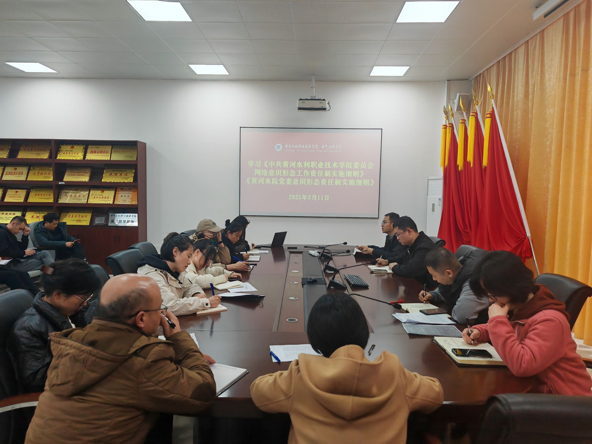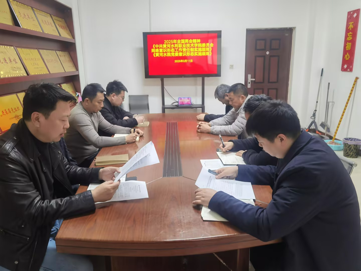 为贯彻落实《黄河水院2025年上半年政治理论学习及思想道德教育计划》学习要求,进一步提升教职工理论学习的制度化、规范化水平和政治理论素养。3月11日,全校各部门、各单位分别组织教职工专题学习2025年全国两会精神、《中共黄河水利职业技术学院委员会网络意识形态工作责任制实施细则》和《黄河水院党委意识形态责任制实施细则》,认真学习贯彻习近平总书记在全国政协十四届三次会议民盟、民进、教育界联组会上的重要讲话精神,坚持党对意识形态工作的领导权,站稳守牢高校意识形态工作前沿阵地。(供图:各相关部门)