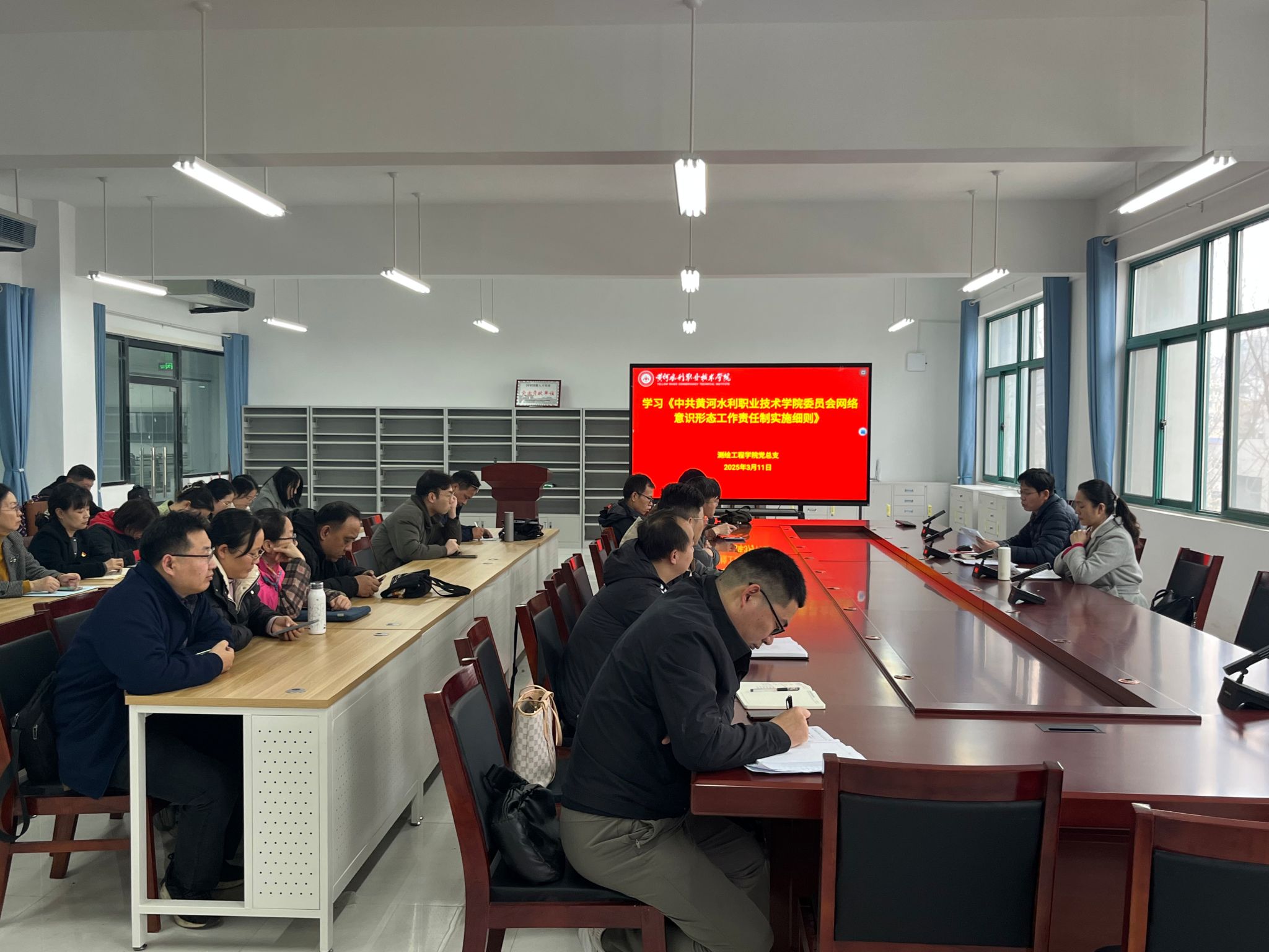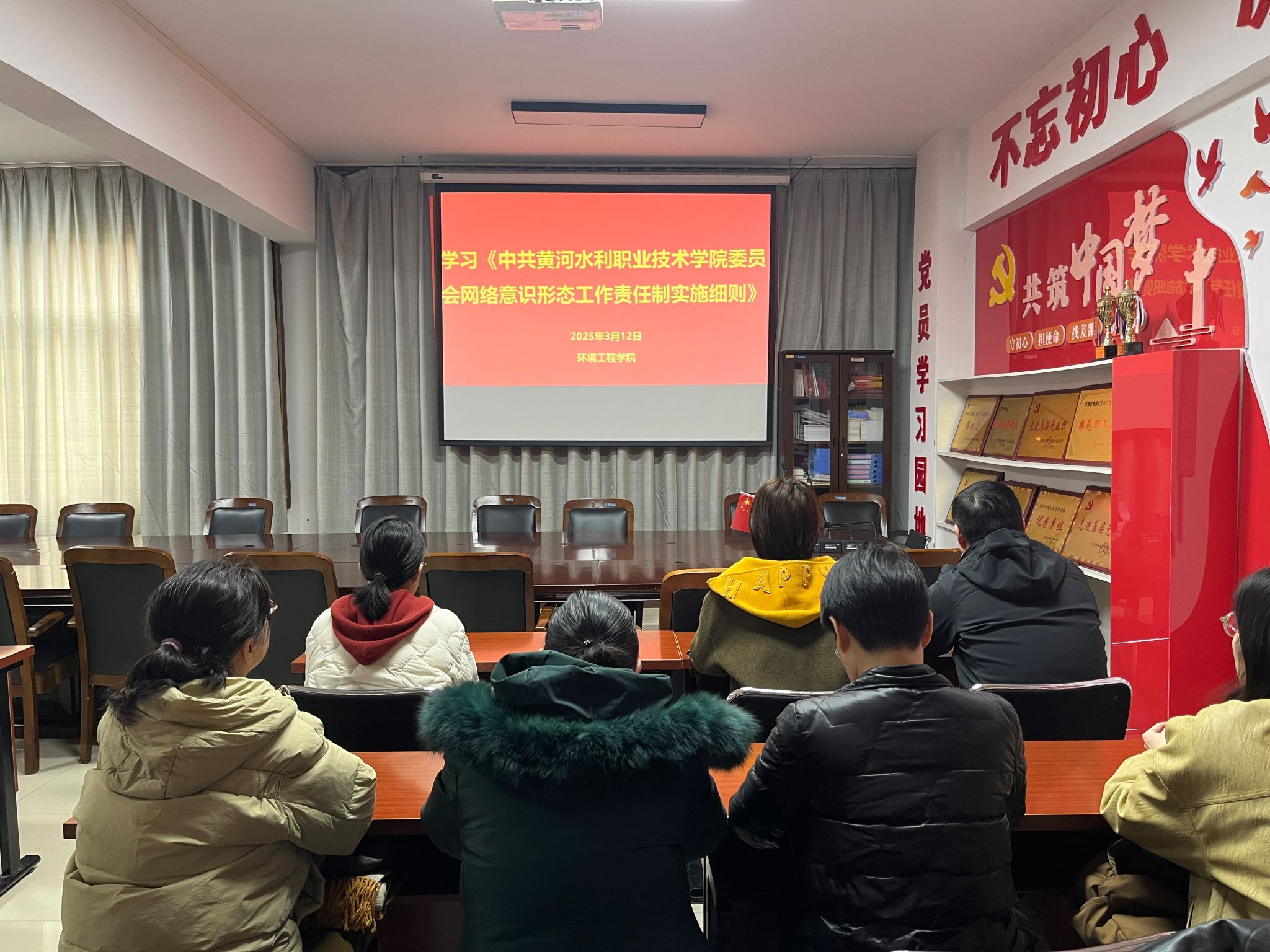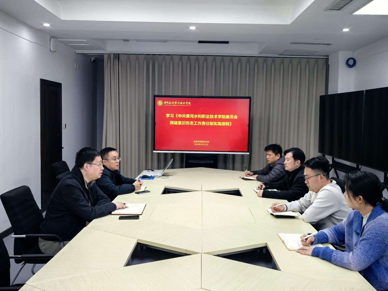 为贯彻落实《黄河水院2025年上半年政治理论学习及思想道德教育计划》学习要求,进一步提升教职工理论学习的制度化、规范化水平和政治理论素养。3月11日,全校各部门、各单位分别组织教职工专题学习2025年全国两会精神、《中共黄河水利职业技术学院委员会网络意识形态工作责任制实施细则》和《黄河水院党委意识形态责任制实施细则》,认真学习贯彻习近平总书记在全国政协十四届三次会议民盟、民进、教育界联组会上的重要讲话精神,坚持党对意识形态工作的领导权,站稳守牢高校意识形态工作前沿阵地。(供图:各相关部门)
