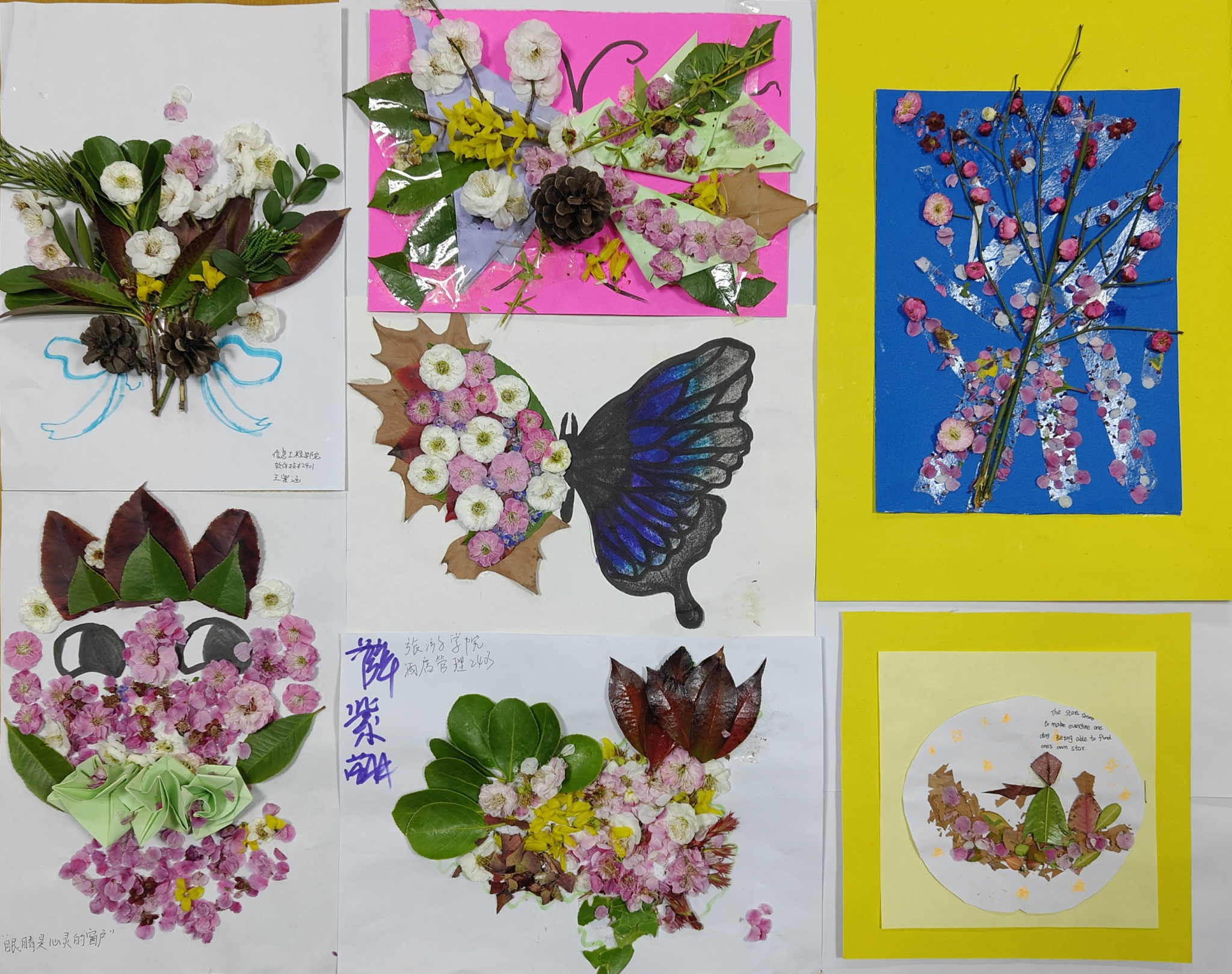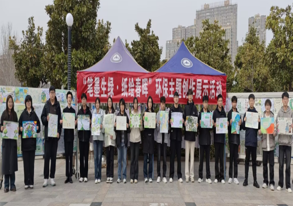校团委联合后勤服务管理中心开展“护绿行动”,50余名学生化身“青葱卫士”,对学校绿化区进行精准养护。园林师傅现场示范科学浇灌技巧,志愿者们手持水桶穿梭其间,俯身观察土壤湿度,调整水流角度进行浸润式浇灌;在“笔墨生绿·纸绘春晖”环保主题创作展示活动中,共收到主题征文、手抄报等形式的作品637份。同学们挥毫泼墨,描绘春日生机,用文字抒发对自然的热爱,用画笔勾勒对美好生活的憧憬,让生态文明理念在笔尖与心田播撒种子;在“绿影斑驳·叶间创意无限”手工活动中,同学们以收集的落叶为天然画纸,运用拼嵌、熏染等技法,创意无限地拼接出一幅幅生动的画作。绿意盎然的叶片在他们的巧手改造下,化作栩栩如生的风景与形象,为校园注入独特的艺术气息。