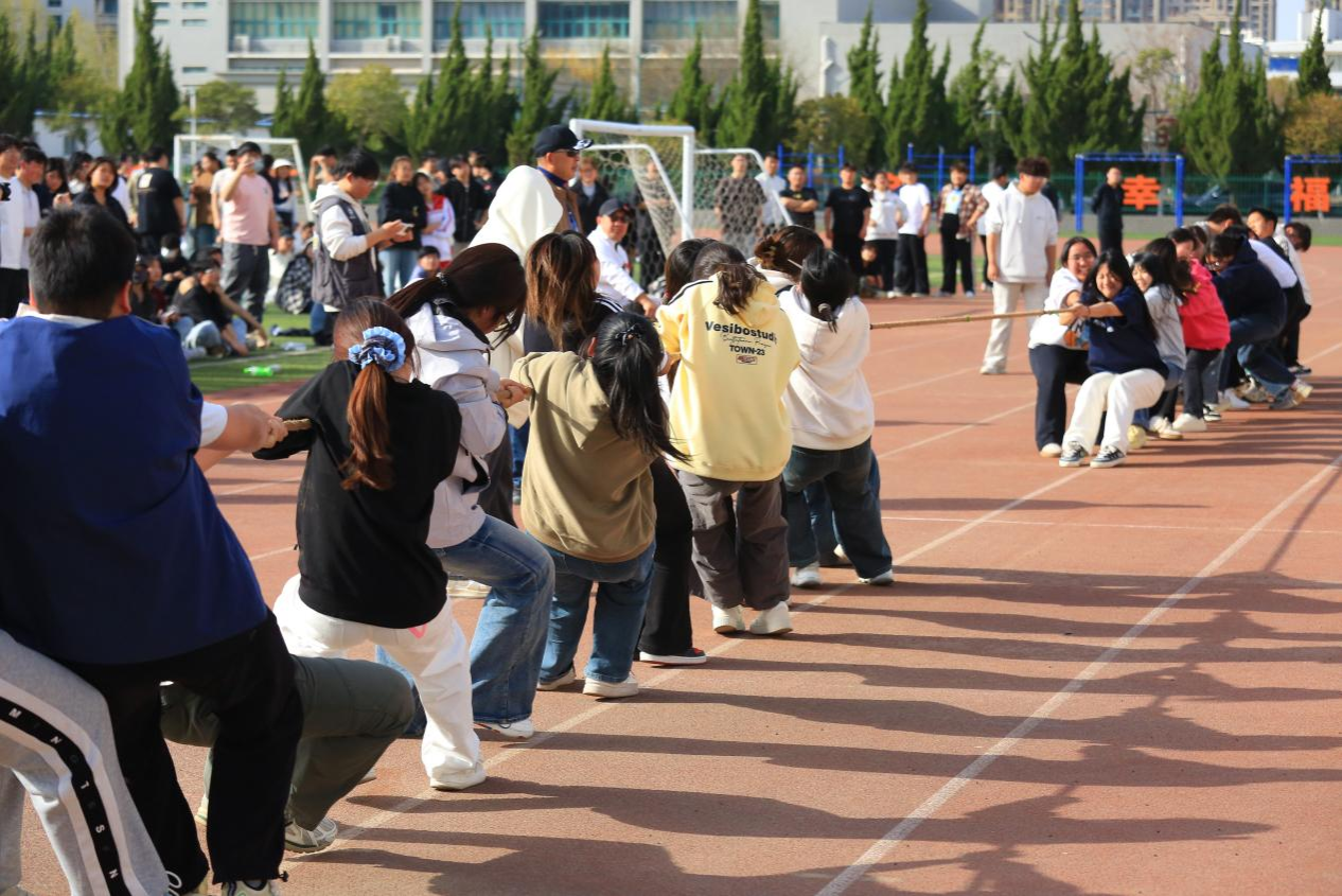 比赛现场气氛热烈,加油声、呐喊声此起彼伏。各院参赛队伍精神抖擞,摩拳擦掌,准备迎接挑战。随着裁判一声哨响,比赛正式开始。绳子在双方队员的手中紧绷,他们脚蹬大地,身体后倾,双手紧握麻绳,使出浑身力气。他们目光坚定,心中只有一个信念——为学院荣誉而战!