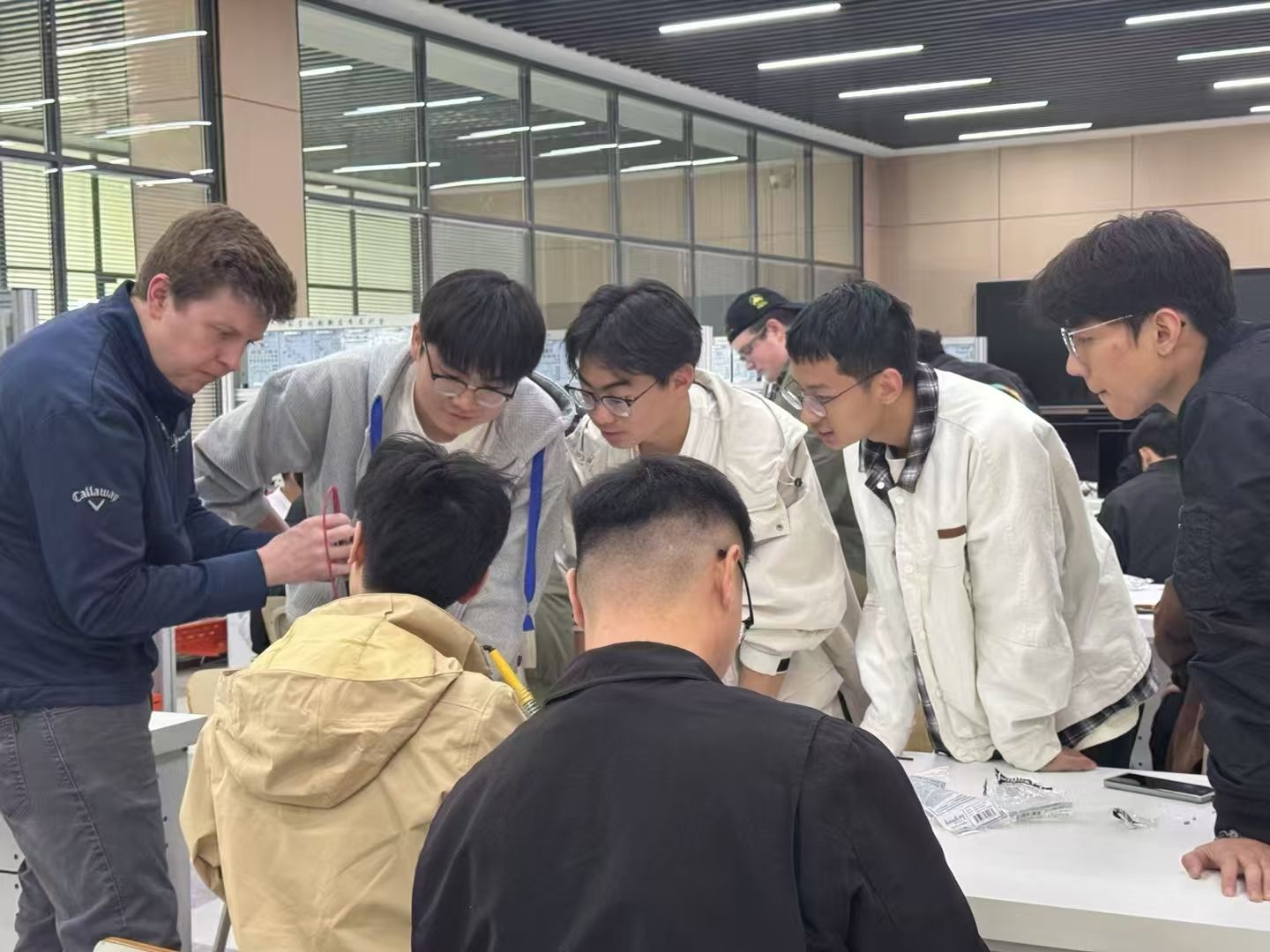 此次教学由理论和实训两部分组成。Tyler和John两位专业教师巧妙地运用课堂复习、提问、讨论等互动启发式课堂教学方法,用多媒体教学的方式讲解了水下声学几何原理和几种不同类型声呐的探测原理和使用方法,以及不同类型电缆线的焊接方法。期间穿插着ROV及扫描声呐安放及操控、系缆绳、图像解译、电缆线焊接等室内外实训教学。专业教师John还在4月23日在3号实训楼学术报告厅,针对中外合作办学专业的全体学生开展了主题“水下机器人ROV”讲座。