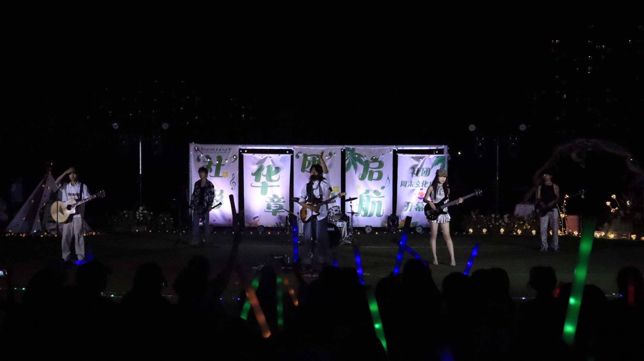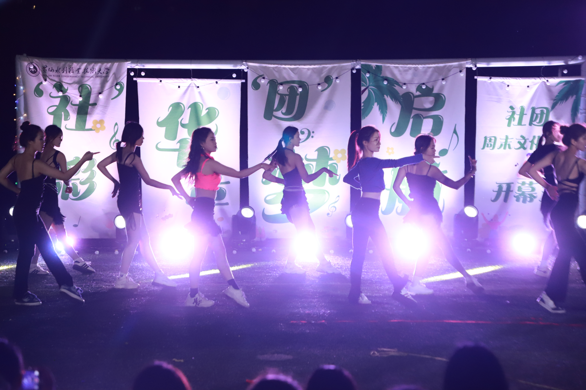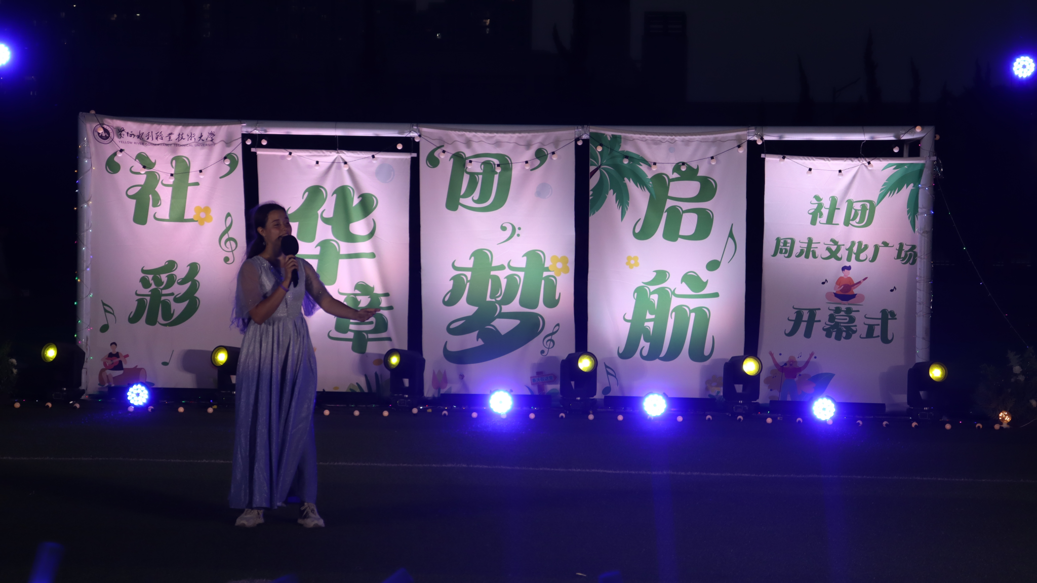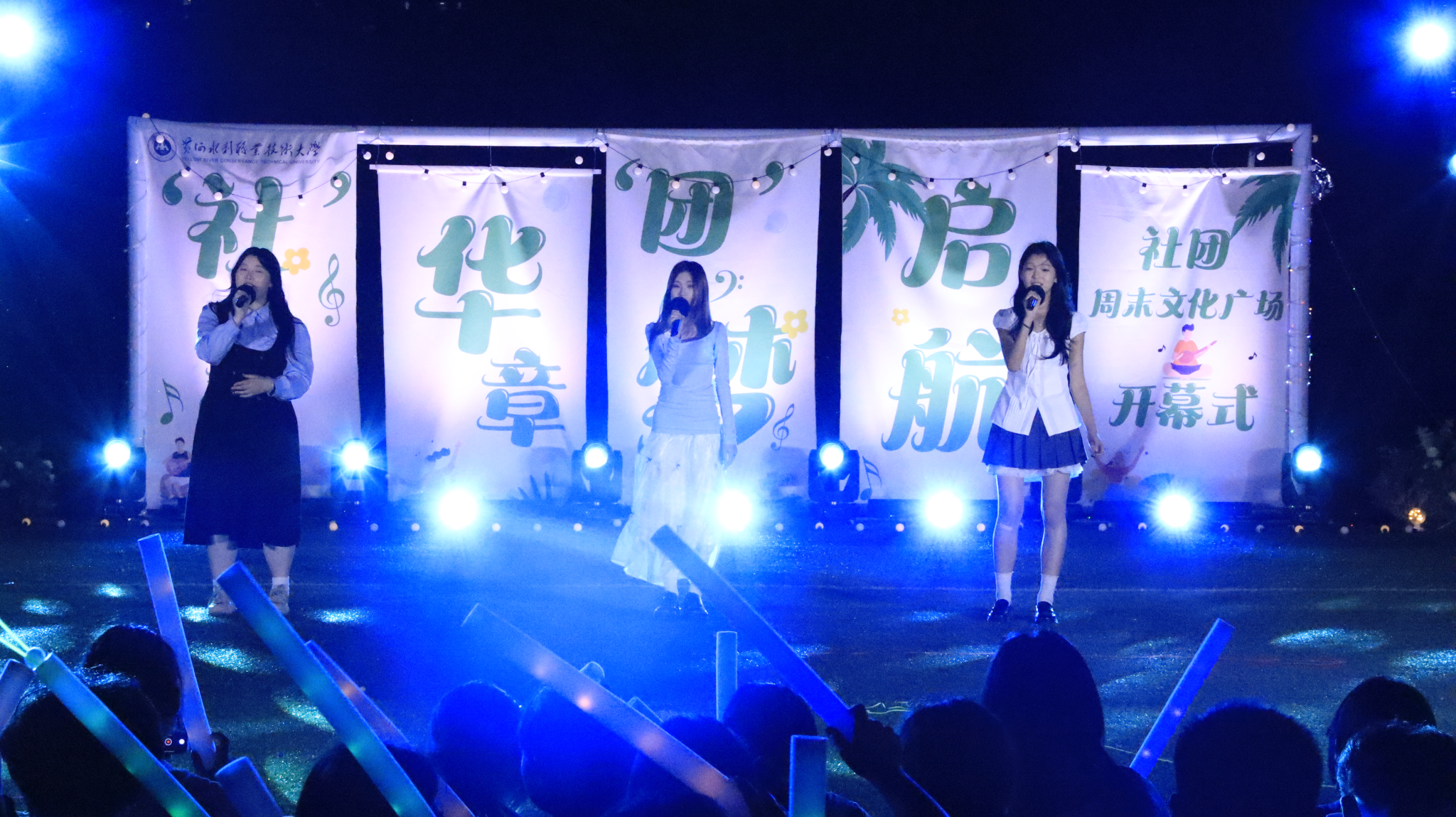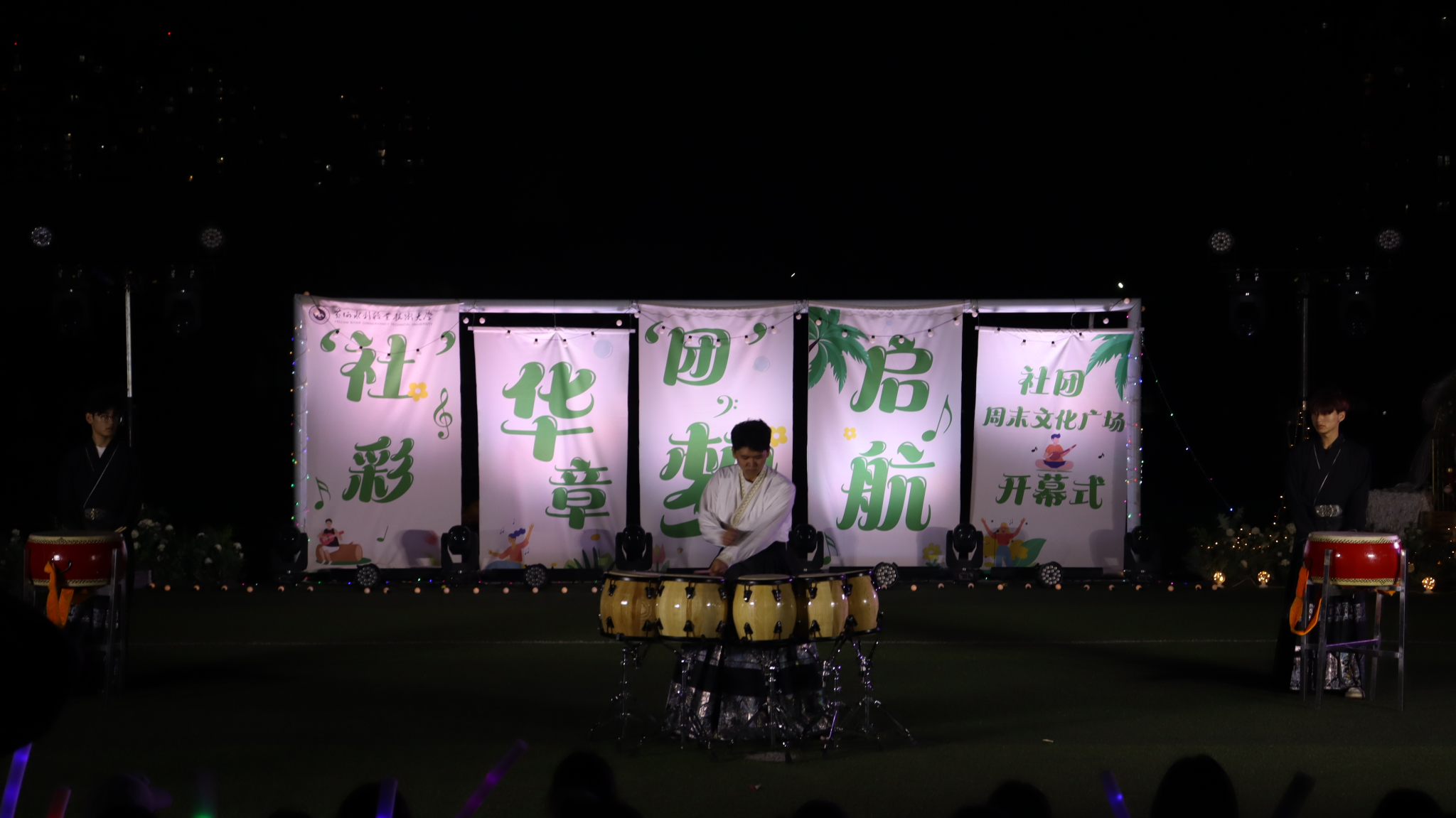 整场演出在大学生艺术团《扇舞九州》的唯美演绎中拉开帷幕,舞者们手持彩扇翩然起舞,以灵动身姿展现中华传统艺术的典雅风韵;国际教育学院留学生嘉娜以独特声线重新诠释经典歌曲《我的歌声里》,为舞台增添别样魅力;垂怜相声社《对春联》妙语连珠,传统曲艺与现代幽默碰撞出欢乐火花;艺术与设计学院社联分会《龙腾虎跃》以恢宏阵势展现民族气魄,鼓点铿锵震撼人心;FJ-crew街舞社带来的《坠入璀璨星河》用充满张力的舞步点燃全场激情;声乐队《时光絮语》的温暖旋律唤起青春共鸣;扬琴独奏《喜讯》琴弦轻颤,奏响欢快乐章;武术协会《赤旗武韵》刚柔并济,一招一式尽显武者风范;礼仪队《古韵风华》通过端庄仪态演绎东方美学精髓;开封文化艺术职业学院和开封大学带来的拉丁舞《恰恰恰》和传统文化展演《狮舞祥瑞》更增进了兄弟院校间的友谊。最后,由尤克里里社团带来的《晴天》引发全场大合唱,观众席手机灯光秀与舞台遥相呼应,如星河闪耀,将气氛推向最高潮。