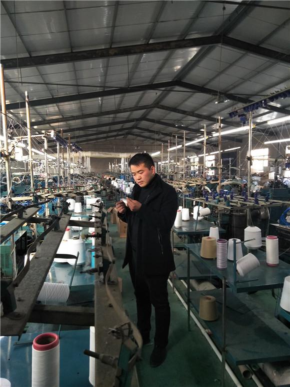 在朋友的帮助下,2017年4月,邢二朋带着一百多万融资回到浚县创业。他在县城西租了一个约900平方米的厂房,把村子里能发动的中老年男人、留守妇女等劳动力集中起来,创办了“邢二朋袜厂”。