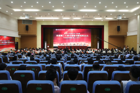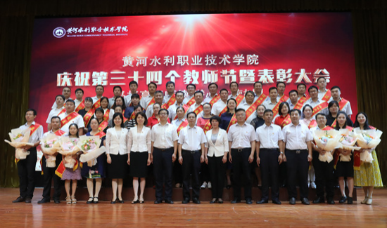 9月10日下午,黄河水利职业技术学院在学生活动中心报告厅举行庆祝第34个教师节暨表彰大会。该校党委书记许琰,校党委副书记、校长祝玉华,党委副书记、工会主席王卫东,党委副书记刘卫锋,副校长焦爱萍、菅浩然,党委委员、组织部部长谷献晖,党委委员、宣传部部长于兆国等出席大会。该校全校教师、离退休教职工代表、校友代表、学生和家长代表等700余人参加了大会,会议由祝玉华主持。