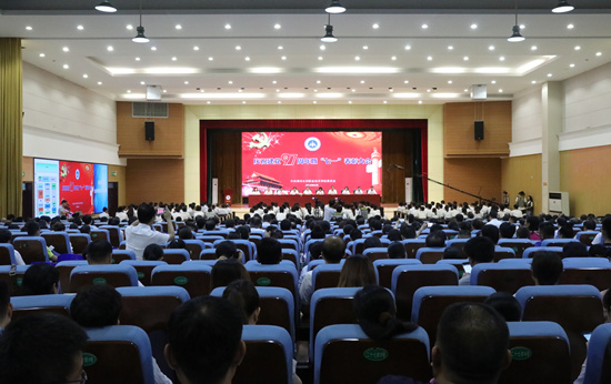 本报讯6月26日上午,黄河水利职业技术学院在学生活动中心报告厅隆重举行庆祝中国共产党成立97周年暨“七一”表彰大会,校领导许琰、祝玉华、王卫东、杨士恒、刘卫锋、焦爱萍、刘玉宾、菅浩然以及党委委员谷献晖、于兆国等出席大会,全体教职工党员、离退休党员代表和学生党员代表参加会议,大会由校党委副书记、工会主席王卫东主持。会议在全体党员高唱《国歌》中拉开序幕。