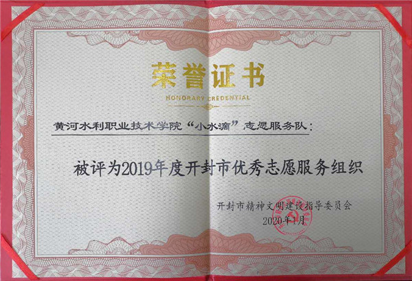 为大力弘扬志愿精神、普及志愿理念、培育志愿文化,扎实推进学雷锋志愿服务活动制度化、常态化,市文明办开展了2019年度开封市优秀志愿服务先进典型选树活动。根据《关于表彰开封市“优秀志愿者、优秀志愿服务项目、优秀志愿服务组织、优秀志愿服务社区”的决定》(汴文明〔2020〕1号),黄河水院“小水滴”志愿服务队荣获2019年度开封市优秀志愿服务组织。