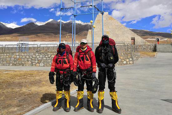 三名校友在珠峰登山训练场(从左至右依次为张卫东、马强、李艺)