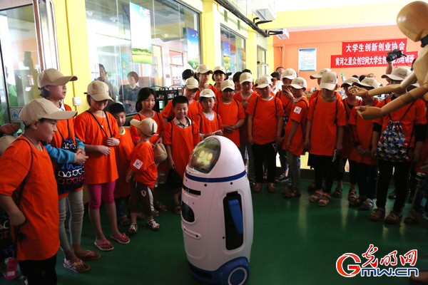 看完宣传片,郭景小学师生们跟随讲解员参观了该校“足迹”文化景观,进一步了解了该校悠久的办学历史、优良的办学传统和鲜明的职业教育办学特色,被该校师生“继往开来 自强不息”的精神所折服。孩子们还参观了测绘工程学院实训馆、现代制造技术实训基地、“黄河之星”众创空间等场馆,了解了该校相关专业发展历程、承办全国职业院校技能大赛和获奖情况、创新创业教育成效等,体验了特色鲜明、设备先进的职业教育实训环境,进一步感受到了现代职业教育的魅力、科学技术的神奇、创造发明的伟大以及工匠精神的可贵。在参观鲲鹏山水利水电仿真实训基地时,孩子们学习了水利科普知识,了解了该校对祖国水利发展事业所做出的贡献,深刻体会到了“献身、负责、求实”的水利行业精神。