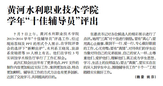《经济视点报》:黄河水利职业技术学院学年“十佳辅导员”评出