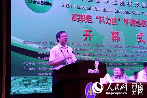 教育部职业教育与成人教育司司长葛道凯,国家测绘地理信息局人事司司长、全国测绘地理信息职业教育教学指导委员会主任、赛区组委会主任李赤一,中国工程院院士、武汉大学教授、赛项专家组和仲裁组组长宁津生,水利部人事司副司长、赛区组委会副主任孙高振,河南省教育厅副厅长任锋,开封市市长级干部、党组成员、赛区组委会副主任朱丽萍,国家测绘地理信息局人事司副司长、全国测绘地理信息职业教育教学指导委员会副主任、赛区组委会副主任王久辉,赛项专家组副组长、武汉大学教授陶本藻,黄河水利职业技术学院党委书记张惠贞,黄河水利职业技术学院院长刘国际,河南省测绘地理信息局副局长禄丰年,河南省教育厅高教处处长韩小爱等出席竞赛开幕式。