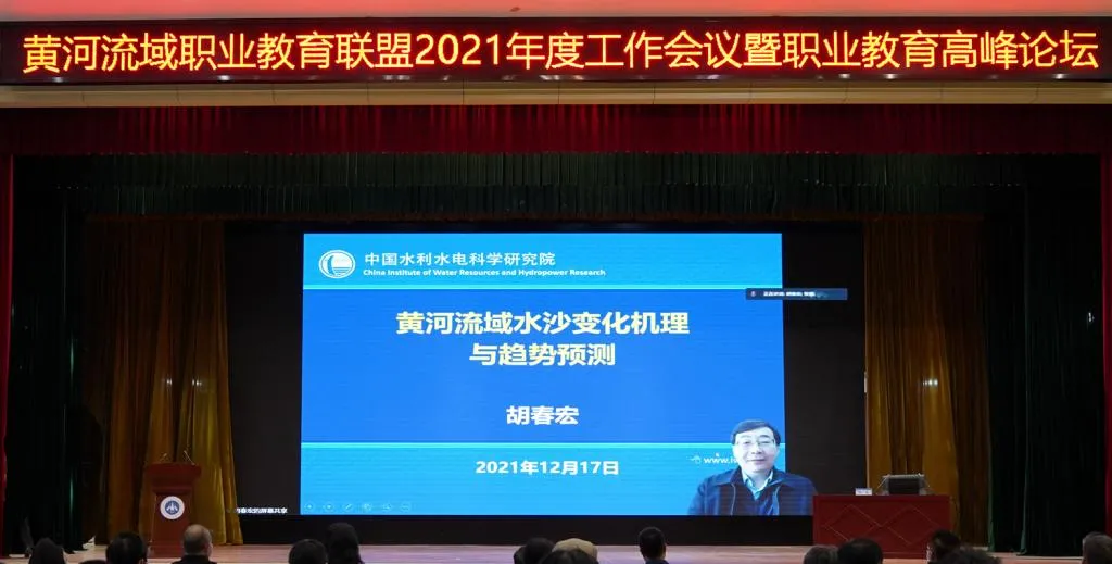 12月17日,黄河流域职业教育联盟2021年度工作会议暨职业教育高峰论坛以线上线下相结合的方式在黄河水利职业技术学院举行。中国工程院院士、中山大学、郑州大学教授王复明,中国工程院院士、中国水利水电科学研究院副院长胡春宏,教育部职业教育与成人教育司院校发展处处长任占营,教育部中外人文交流中心主任杜柯伟,河南省教育厅党组成员、副厅长陈垠亭,黄河水利委员会国际合作与科技局局长郜国明,黄河水利职业技术学院全体校领导出席会议。黄河流域职业教育联盟代表以及关心支持教育事业发展的社会各界人士9.8万人次线上参加会议。