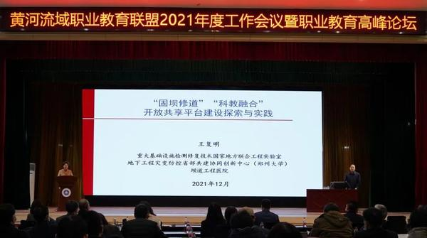 12月17日,黄河流域职业教育联盟2021年度工作会议暨职业教育高峰论坛以线上线下相结合的方式在黄河水利职业技术学院举行。中国工程院院士、中山大学、郑州大学教授王复明,中国工程院院士、中国水利水电科学研究院副院长胡春宏,教育部职业教育与成人教育司院校发展处处长任占营,教育部中外人文交流中心主任杜柯伟,河南省教育厅党组成员、副厅长陈垠亭,黄河水利委员会国际合作与科技局局长郜国明,黄河水利职业技术学院党委书记周保平、院长胡昊与全体校领导出席会议。黄河流域职业教育联盟代表以及关心支持教育事业发展的社会各界人士9.8万人次线上参加会议。
