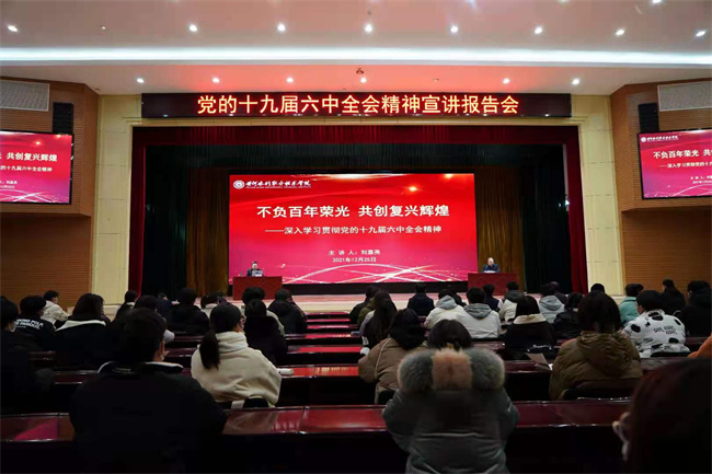 12月25日,省委宣讲团成员、河南大学马克思主义学院副院长刘嘉尧在黄河水利职业技术学院大学生活动中心一楼报告厅为广大师生宣讲党的十九届六中全会精神。党委宣传部、学生工作部、团委、各学院师生代表聆听报告,报告会由校党委副书记、工会主席杨士恒主持。