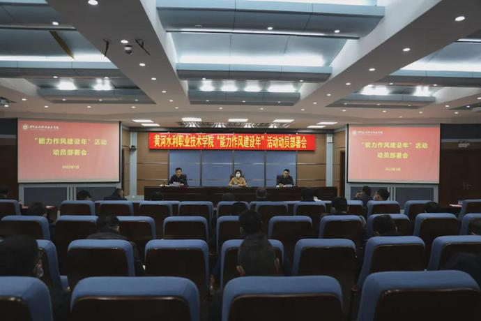 1月22日下午,黄河水利职业技术学院召开“能力作风建设年”活动动员部署会。全体校领导和中层正职现场参加会议,中层副职、科级干部参加视频会议。会议由校党委副书记、校长胡昊主持。
