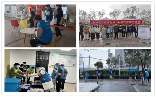 围绕应对突发公共事件,开展“蓝色”志愿服务。面对日益严峻的疫情防控形势,各学院积极组织开展体温检测、校园秩序维护、宣传防疫知识、倡导有氧运动等志愿服务活动,引导学校青年学生自觉参与爱卫运动,强化戴口罩、勤洗手、保持社交距离、使用公勺公筷等防疫卫生习惯,增强校园防疫意识,养成良好的校园生活习惯。校青年突击队组织开展用餐物资保障志愿服务活动,在封闭管控期间,为在校学生提供了集中有效的基础生活保障,彰显了青年学子在疫情防控关键时刻的责任与担当。