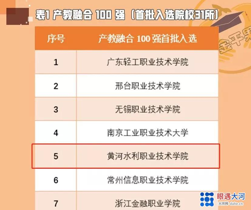 “产教融合100强”全国首批入选31所高职院校 黄河水院位列第5名