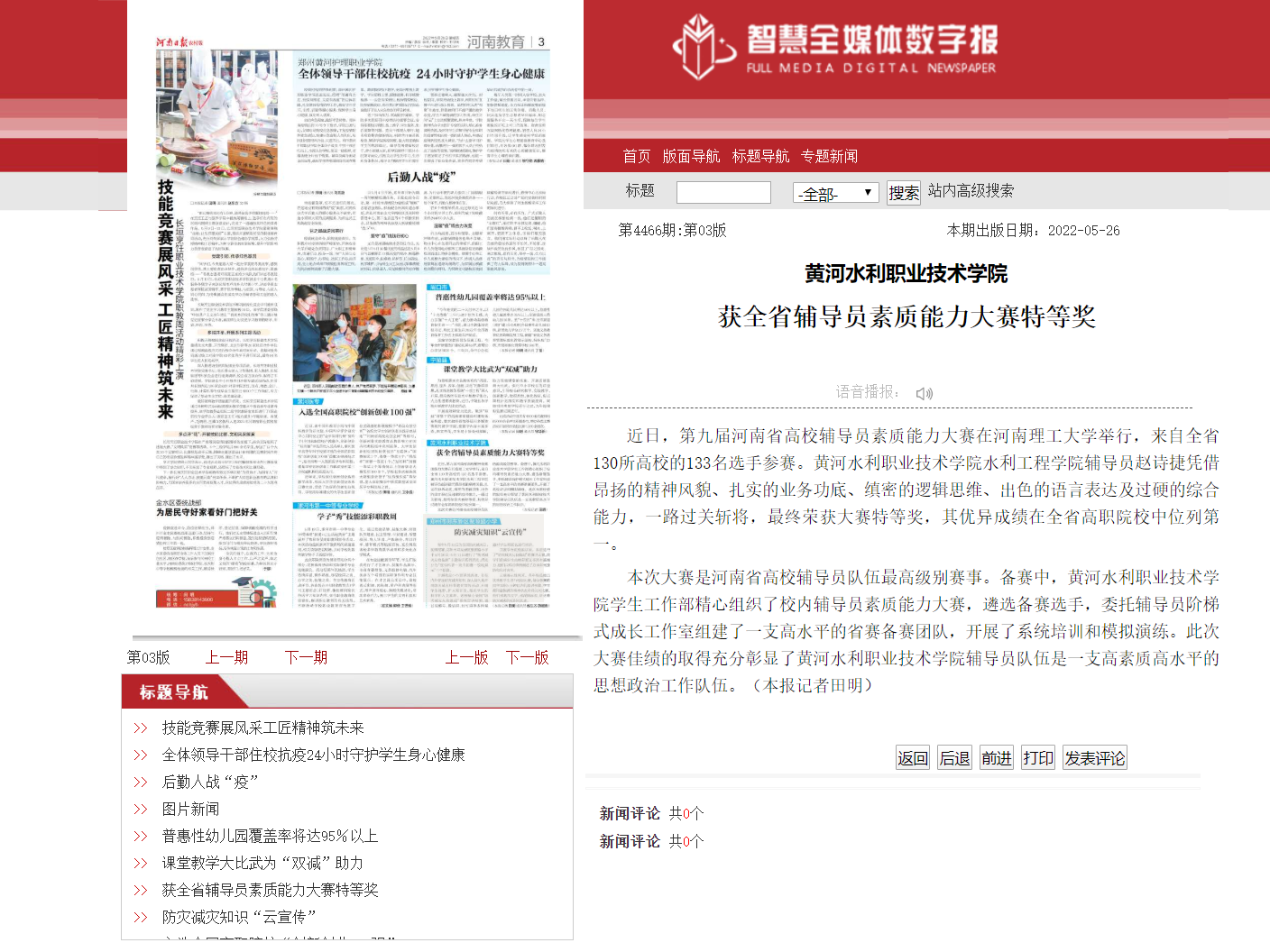 河南日报农村版:黄河水利职业技术学院获全省辅导员素质能力大赛特等奖