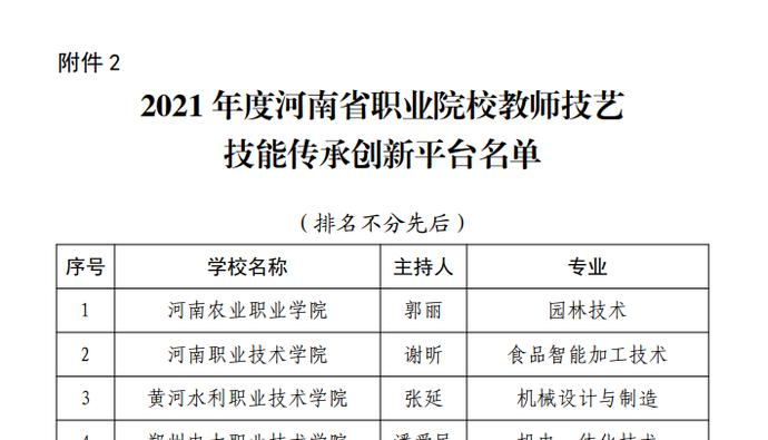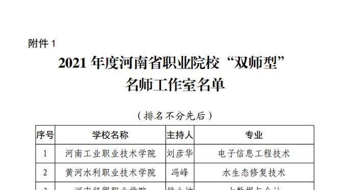 近日,河南省教育厅办公室发布《河南省教育厅办公室关于公布2021年度河南省职业院校“双师型”名师工作室和教师技艺技能传承创新平台名单的通知》(教办职成〔2022〕170号),黄河水院冯峰教授主持的“水生态修复技术”获评河南省职业院校“双师型”名师工作室,张延教授主持的“机械设计与制造”获评河南省职业院校教师技艺技能传承创新平台。至此,学校已获评河南省职业院校“双师型”名师工作室和教师技艺技能传承创新平台各2个。