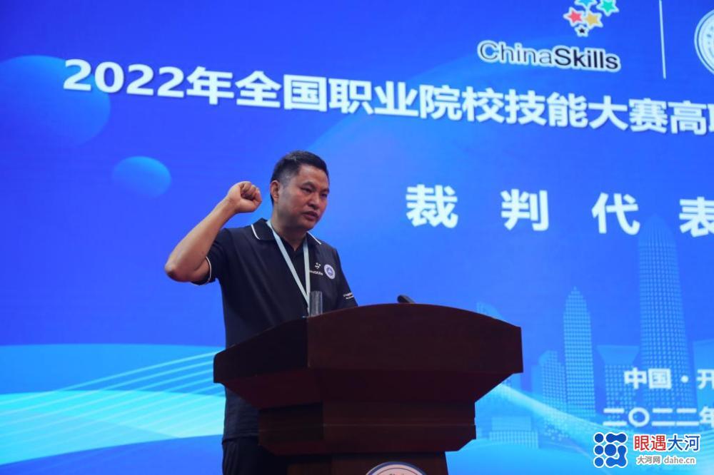 赛项裁判长、甘肃有色冶金职业技术学院教授陈卫东宣布竞赛规则。裁判员代表、参赛选手代表分别宣誓。浙江拓峰科技股份有限公司副总经理张星耕代表水处理技术赛项合作企业致辞。