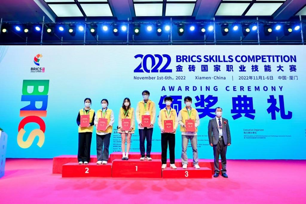 2022年11月8日,记者从黄河水利职业技术学院了解到,2022年金砖国家职业技能大赛决赛在福建省厦门市闭幕,该校以省赛第一名的身份,代表河南省参加了网络营销赛项的决赛。经过长达八个半小时的激烈角逐,该校商务与管理学院王晓丹老师和吴君丽同学组成的代表队荣获全国一等奖,并收获国际赛银牌。同时,王晓丹还将被人力资源和社会保障部授予“全国技术能手”的荣誉称号。