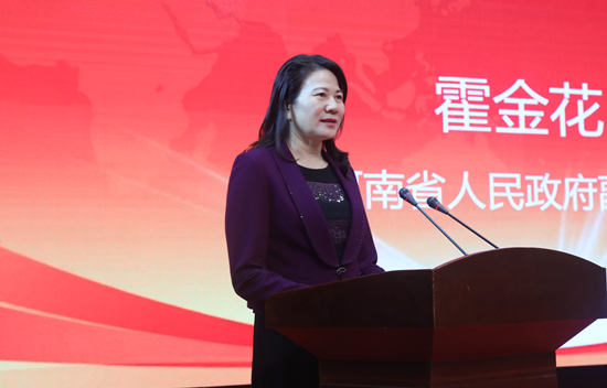 霍金花在讲话中指出,近年来,河南省认真贯彻落实国家新时期教育对外开放政策,顺应高等教育国际化时代潮流,全方位推进与“一带一路”沿线国家的教育务实合作,产生了良好的经济和社会效益。她表示,河南省依托特色优势“走出去”,与“一带一路”沿线国家合作开展境外办学,培养技术技能人才,黄河水院先后为“一带一路”沿线国家培养留学生近500名,并在赞比亚和南非成立2所大禹学院,成功入选中国特色高水平高职学校建设单位,打造了职业教育新品牌,为水利行业建设和企业发展做出了积极贡献