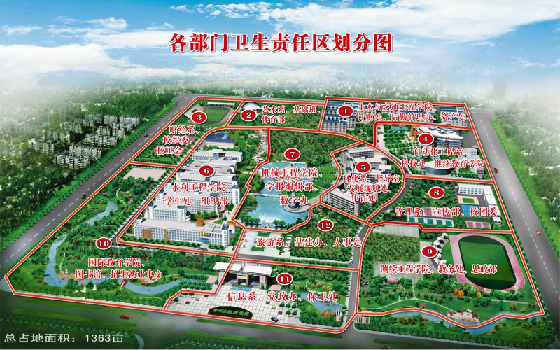 2.学校将校园划分为12个责任区,由各院系牵头组织实施,组织师生对卫生责任区(见附件)进行彻底清扫。要求地面上无白色垃圾、无烟头、无建筑垃圾、无干枯树枝。白色垃圾和烟头放至垃圾箱,建筑垃圾和干枯树枝堆放在路边即可。