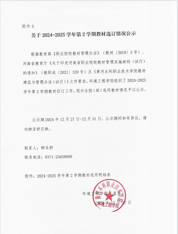 关于2024-2025学年第2学期教材选定情况公示