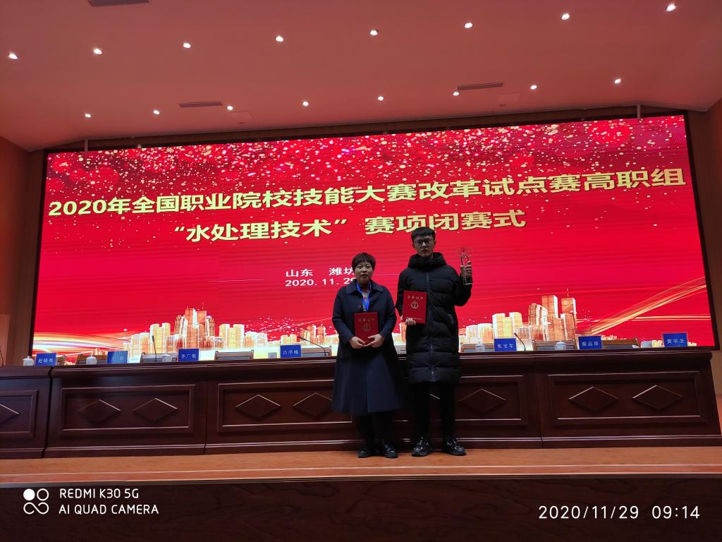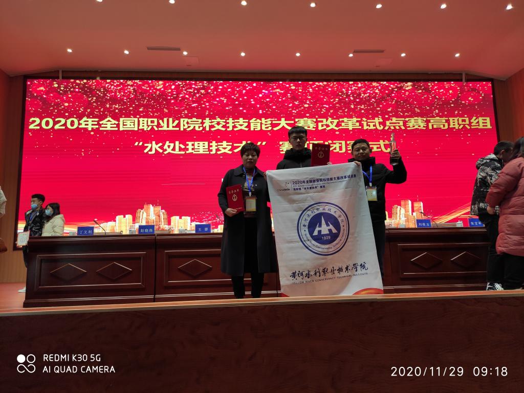 11月27日—28日,2020年全国职业院校技能大赛改革试点赛高职组“水处理技术”赛项在山东科技职业学院举办,本次比赛由教育部、发展改革委、科技部、工业和信息化部、民政部等37个部门联合主办,共有来自全国各省市、自治区、新疆生产建设兵团的29支代表队参赛。我校环境工程学院张尧旺副院长(主持工作)担任河南代表队领队,我校王雪平老师带领19级学生闫腾柯参加此次大赛。经过激烈角逐,我校环境工程技术专业(污染治理方向)学生闫腾柯同学勇夺大赛第一名,荣获一等奖。