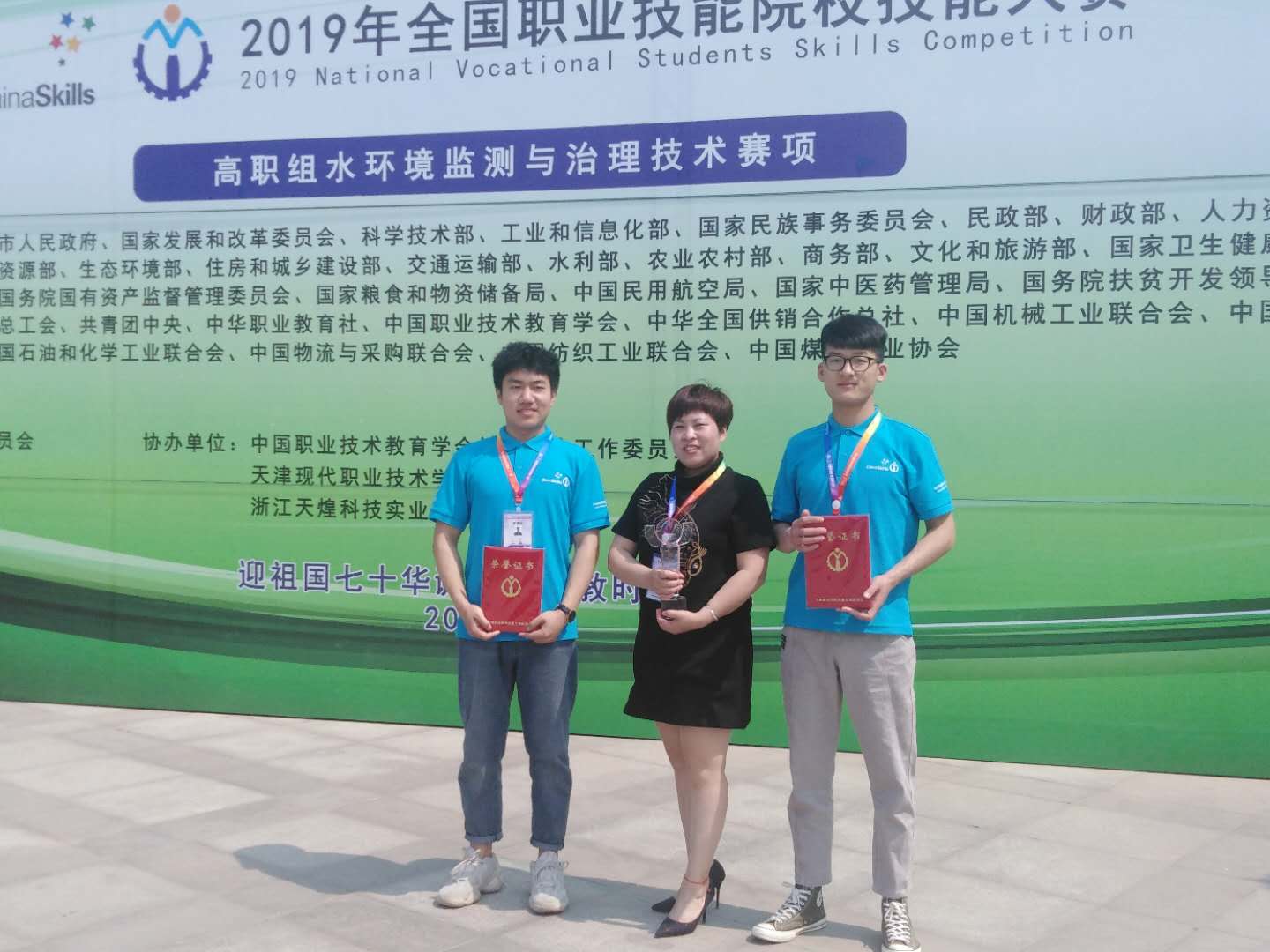 5月9日至5月10日全国职业院校技能大赛高职组“水环境监测与治理技术”比赛在天津现代职业技术学院举行,参加此次比赛有来自全国各高职院校79支代表队参赛。经过四月初的省赛选拔,我省共有4支代表队进入国赛,我校环境工程学院张尧旺副院长担任河南省代表队领队;我校代表队由陈西良老师担任领队,王雪平、李孝坤老师为指导老师,带领17级环境工程技术专业高志鹏和王宁波同学参加比赛。经过激烈角逐,我校代表队荣获“水环境监测与治理技术”国赛一等奖。