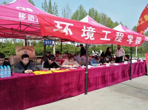 环境工程学院值班大本营驻扎在祥云体育场旁,为参赛选手提供水源,运动服,医疗用品等服务,值班人员认真负责,积极应对一些紧急突发事件,为运动场上运动员积极撰写加油通讯稿,环境工程学院大本营是运动员们的坚强后盾。