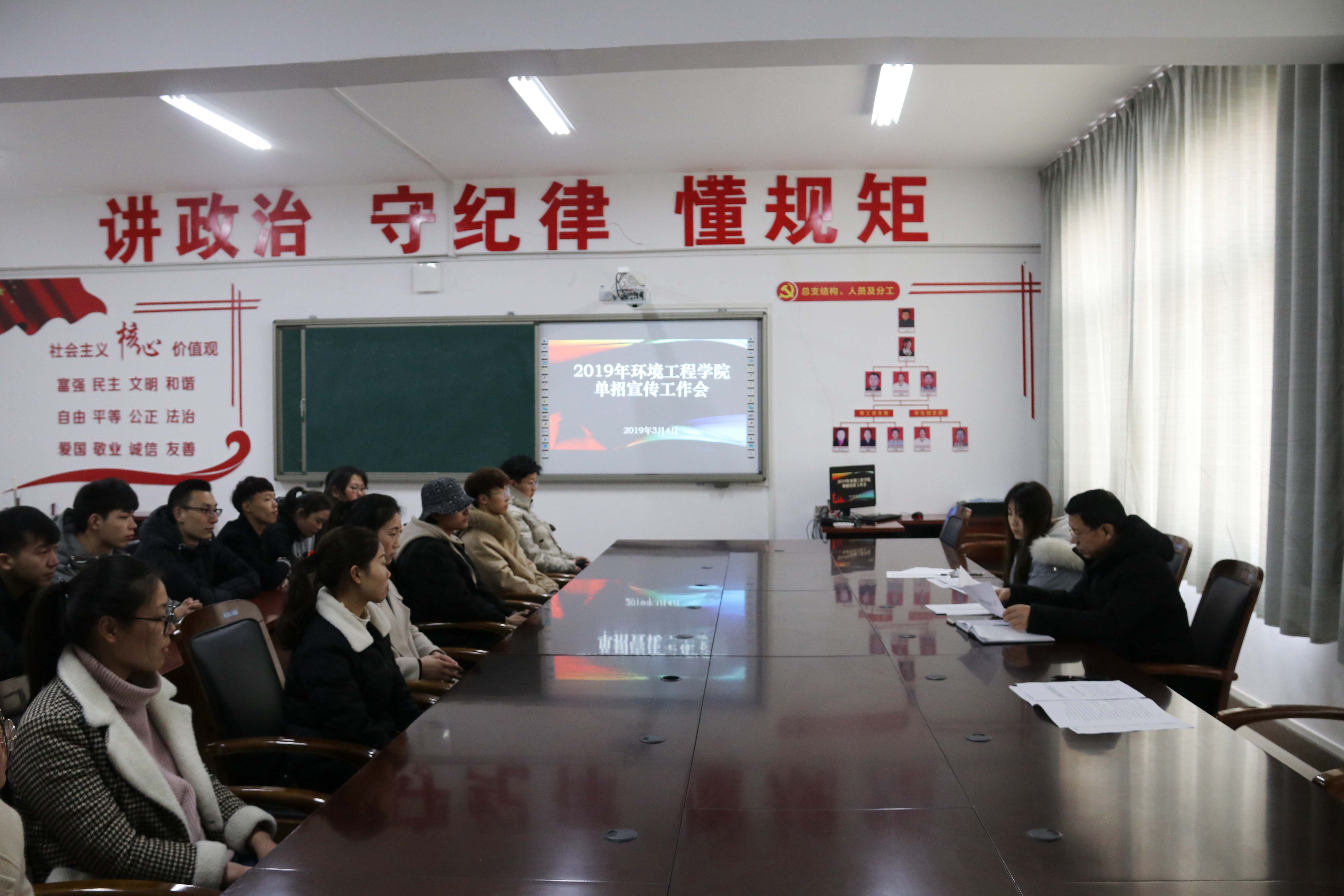 为贯彻我校招就中心2019年招生宣传工作的通知及相关文件精神,环境工程学院于2019年3月4日中午在5号实训楼5405会议室召开2019年单招宣传工作会。学院副院长张尧旺、办公室主任李孝坤、招生就业负责人杜凌楠,以及参与我院2019年单招宣传工作的焦作、济源、通许籍地区的20余名学生参加了此次工作会。