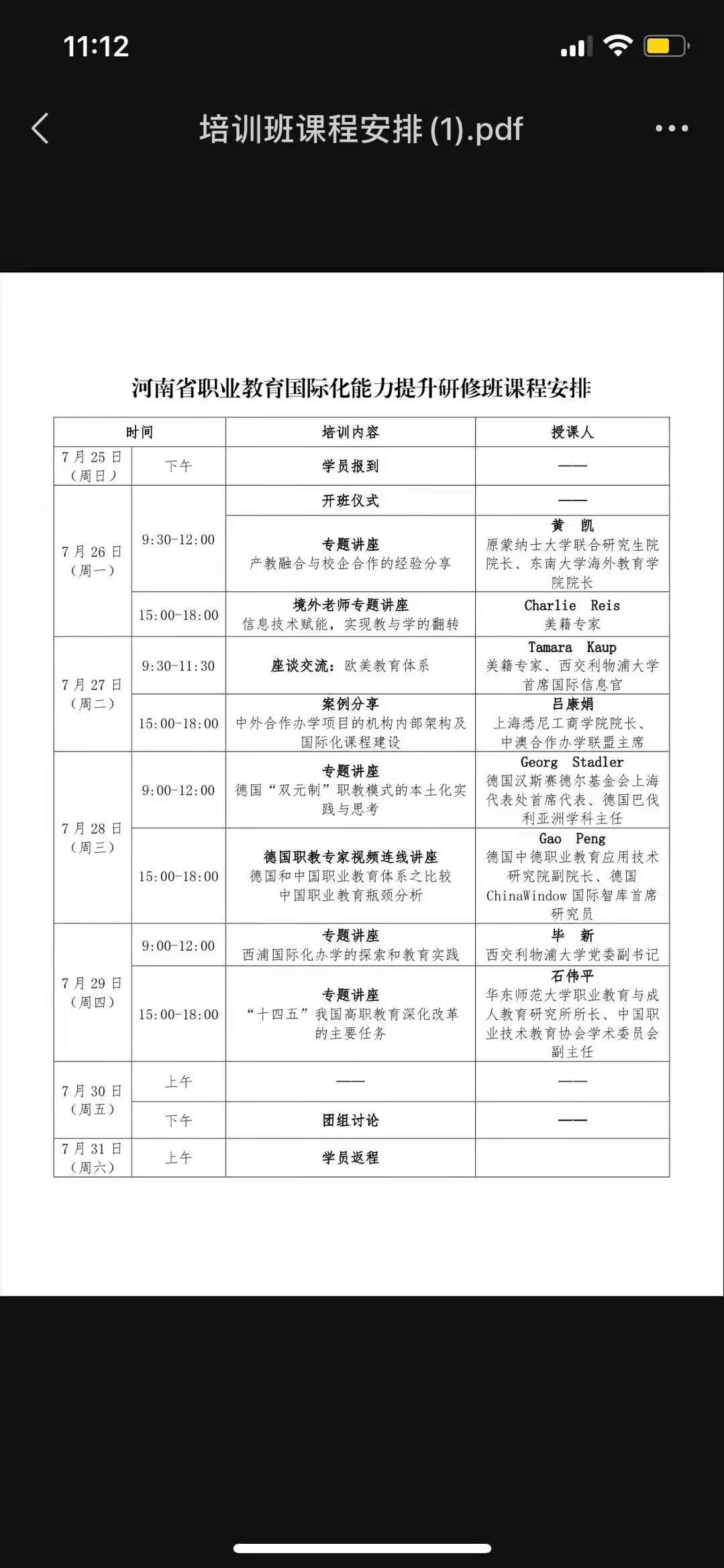 2021年7月26日,环境工程学院王恺老师参加了河南省职业教育国际化能力提升研修班培训,并顺利结业。