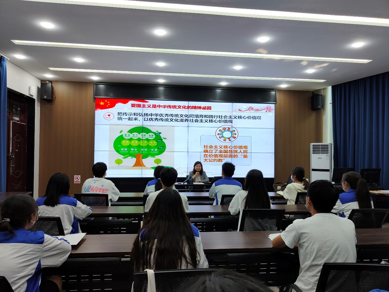 课程从“爱国主义是中华民族精神的核心、新时代爱国主义的鲜明主题、做新时代爱国主义最坚定的弘扬者和实践者”三个方面进行讲解。高琼在讲座中运用了大量生动详实的史料,深刻揭示了新时代弘扬爱国主义精神,就是要厚植家国情怀,培育精神家园,引导青年学子坚持中国道路、弘扬中国精神、凝聚中国力量,为实现中华民族伟大复兴的中国梦提供强大精神动力。