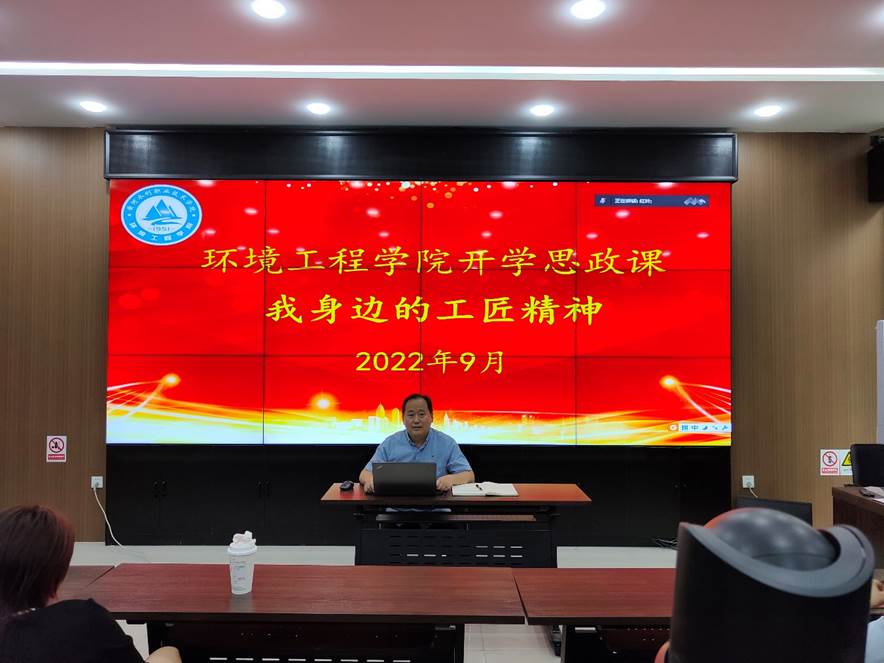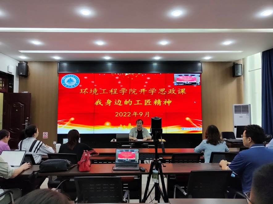 2022年9月20日下午,环境工程学院在8号实训楼2楼报告厅召开“2022年秋季学期开学思政课-----我身边的工匠精神”,学院领导班子、科级以上干部、国家技能大赛指导教师参加线下会议,全体教职员工、2022级新生参加线上会议。