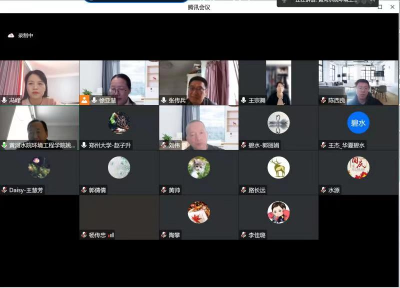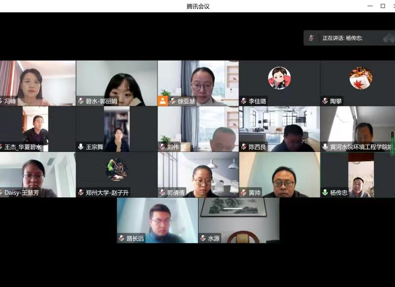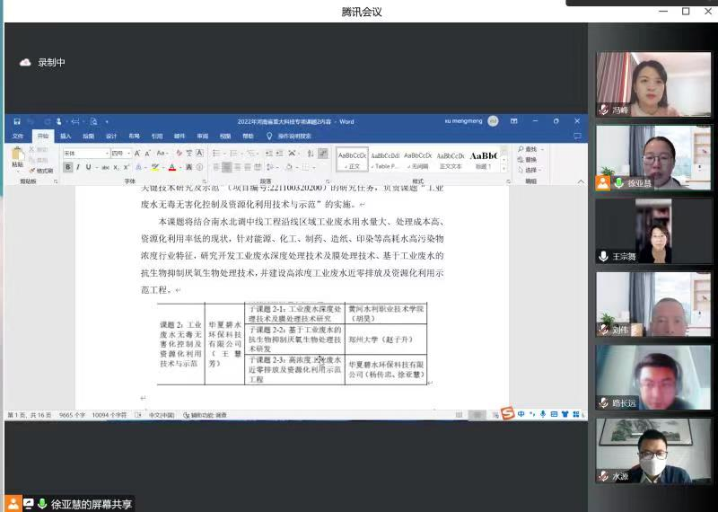 2022年1028上午河南省重大科技专项《南水北调中线工程水生态环境保护关键技术研究及示范》(221100320200)子课题《工业废水无毒无害化控制及资源化利用技术与示范》进展交流会在腾讯会议线上举行,黄河水利职业技术学院校长胡昊教授、环境工程学院院长冯峰教授、华夏碧水环保科技有限公司张传兵经理、郑州大学赵子升副教授以及各单位项目科研骨干20人参会。