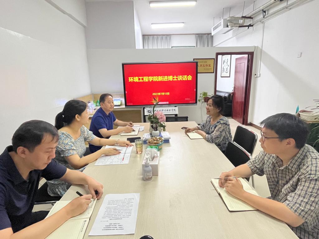 2023年7月12日上午,环境工程学院在SY5403会议室开展新进博士谈话会。院长冯峰,党总支副书记陶攀、副院长姚新鼎及新进博士柴冉、朱丹参加会议。会议由院长冯峰主持。