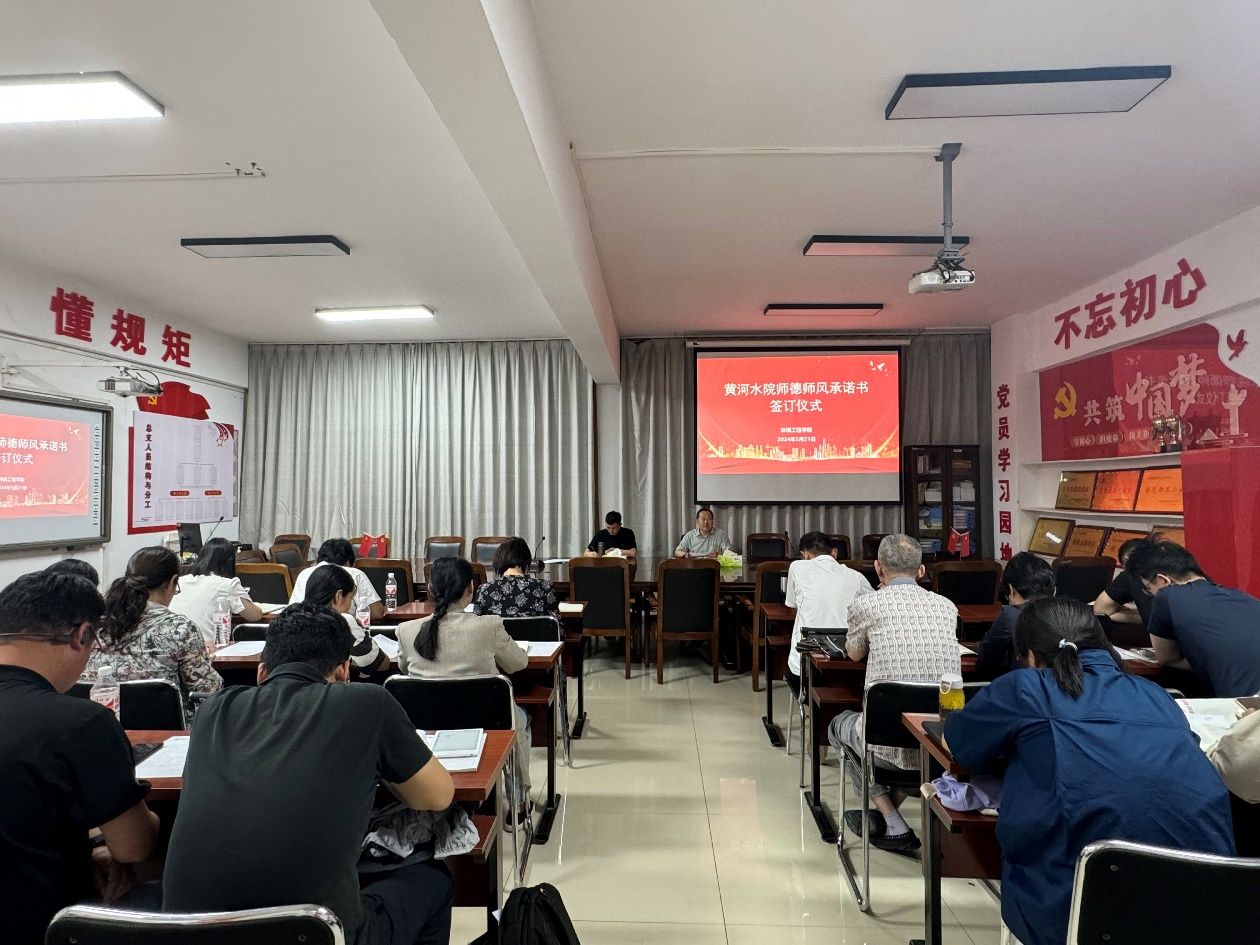 会后,环境工程学院全体教职工签订黄河水院师德师风承诺书。